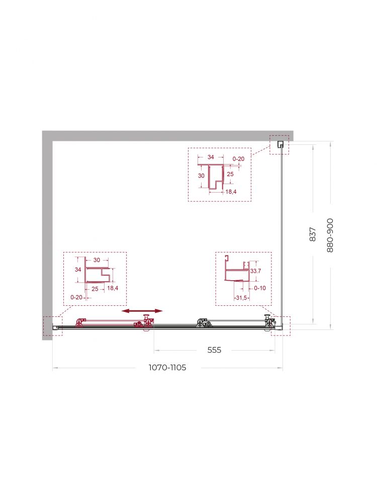 UNO-195-AHF-31-110/90-C-Cr Душевой уголок в размере 110x90. Форма прямоугольная, толщина стекла 5 мм. Цвет стекла: прозрачное. Профиль в цвете хром