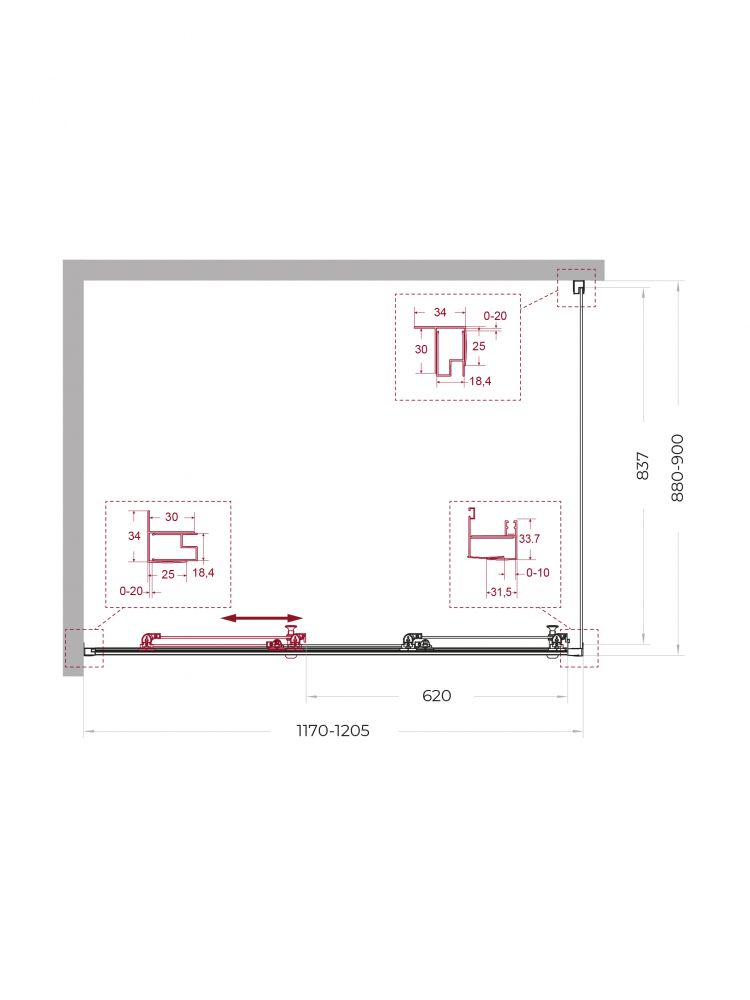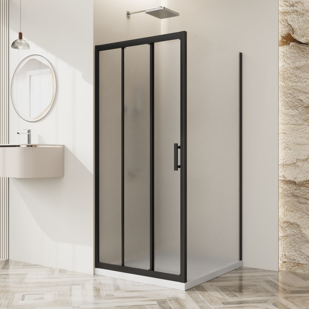 UNO-195-AHF-31-120/90-P-NERO Душевой уголок в размере 120x90. Форма прямоугольная, толщина стекла 5 мм. Цвет стекла: матовое. Профиль в цвете черный
