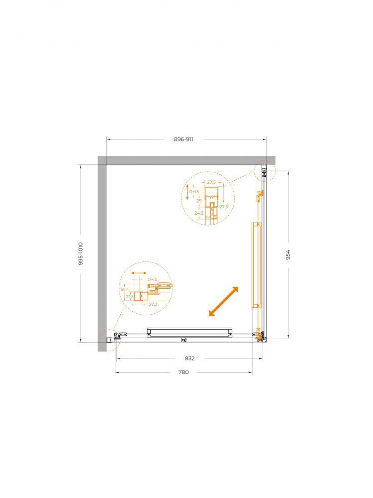 ● Инновационный поворотно-раздвижной механизм использует двойные ролики сплава ZAMAK и интегрированные петли. Благодаря этому створка не просто движется по прямой, а плавно поворачивается и заходит внутрь ограждения.