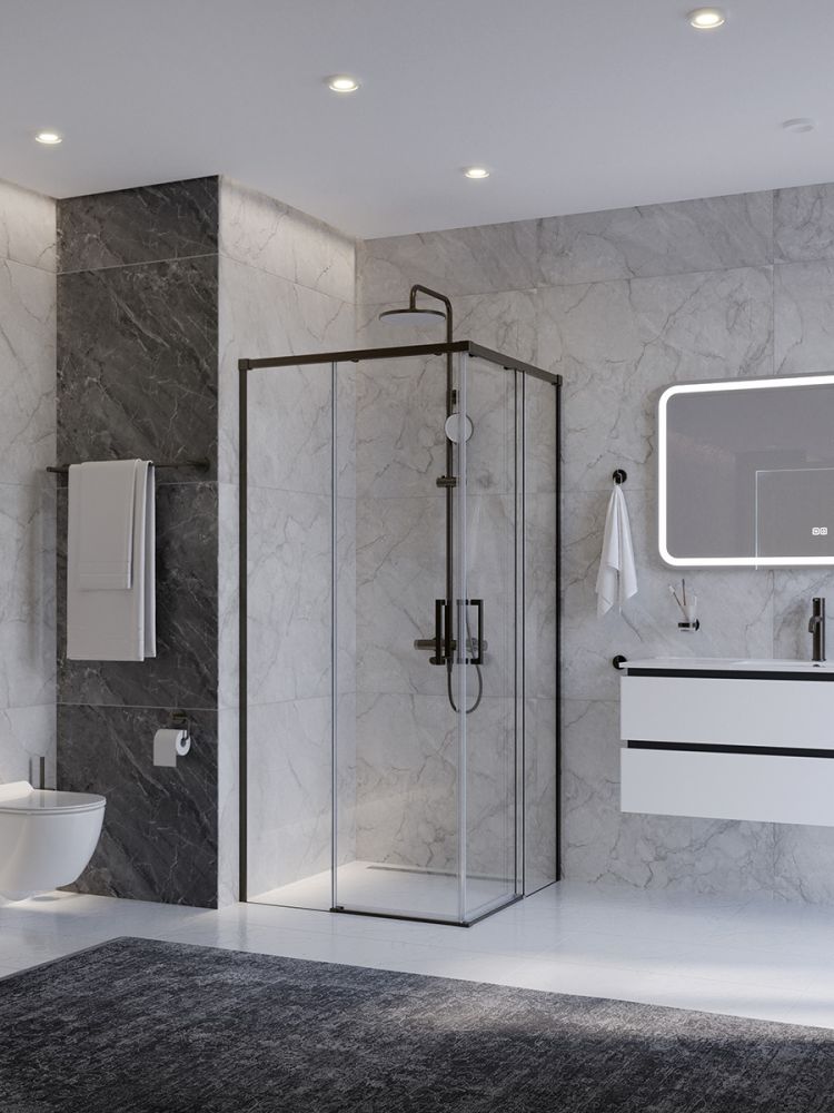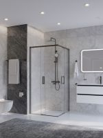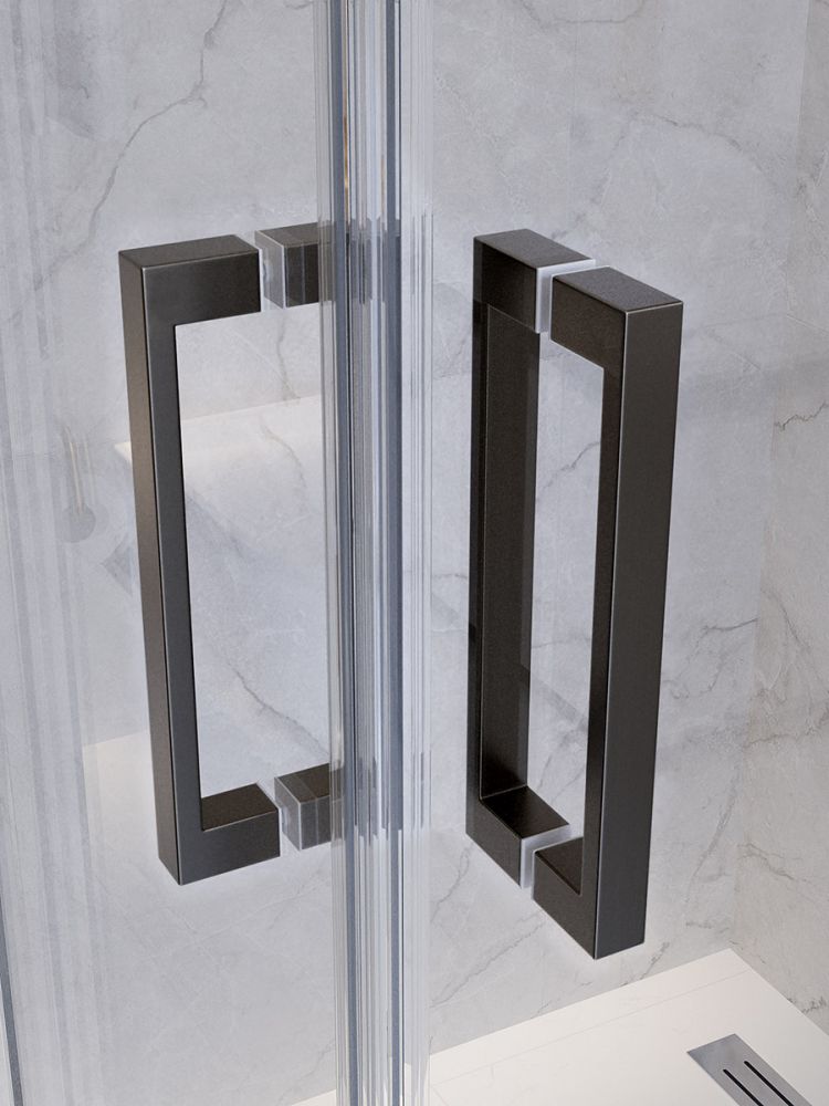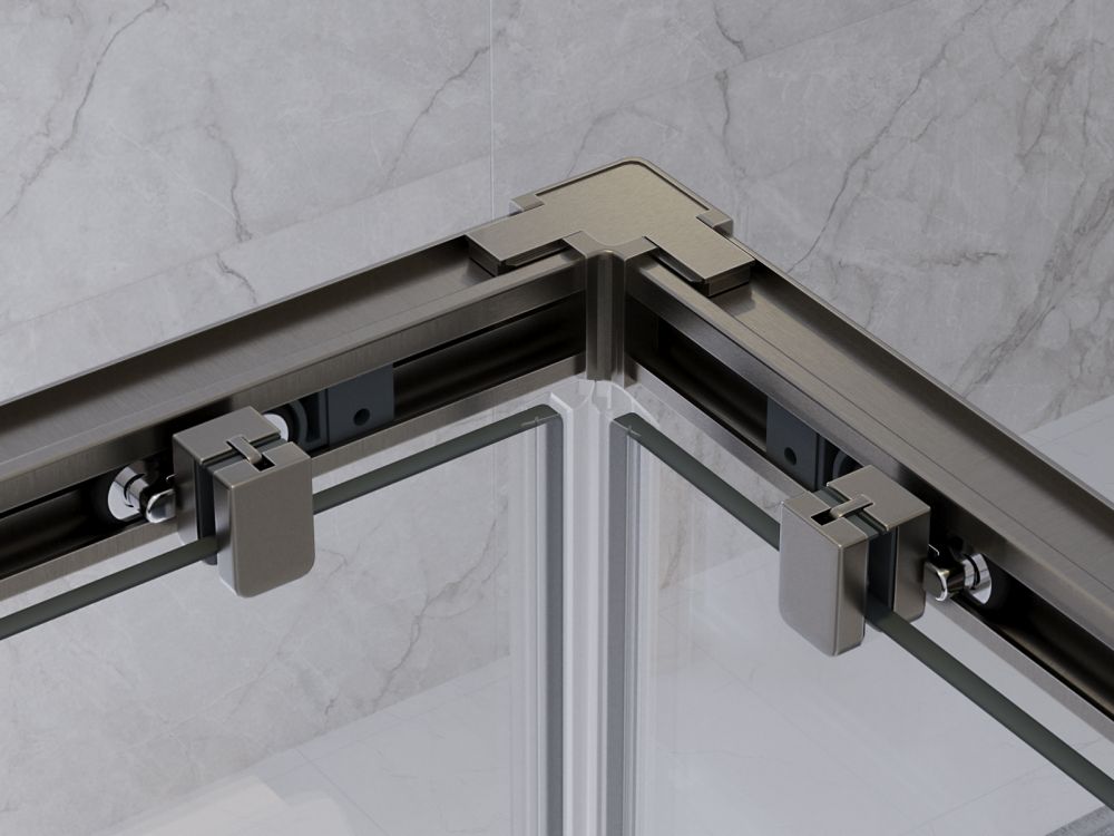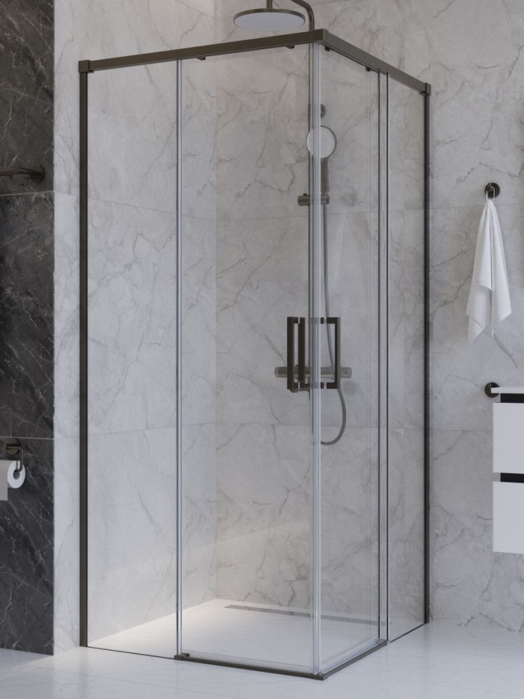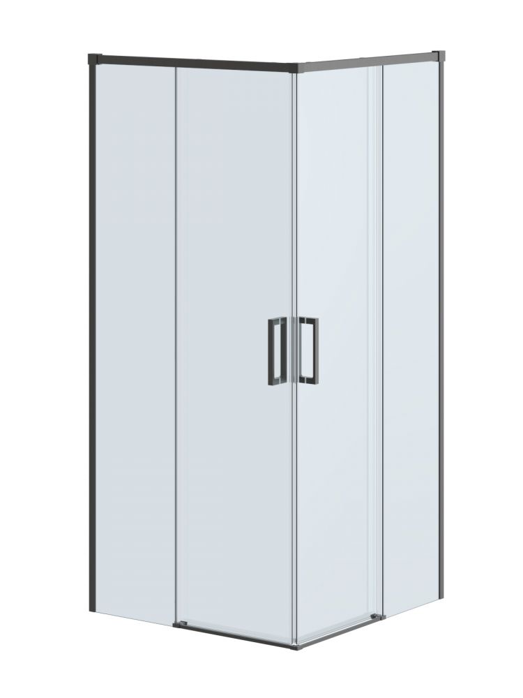 PLANE-A-2-100-C-GM Душевой уголок, отделка Оружейная сталь без поддона в размере 100x100. Прозрачное стекло толщиной 6мм. Цвет профиля оружейная сталь