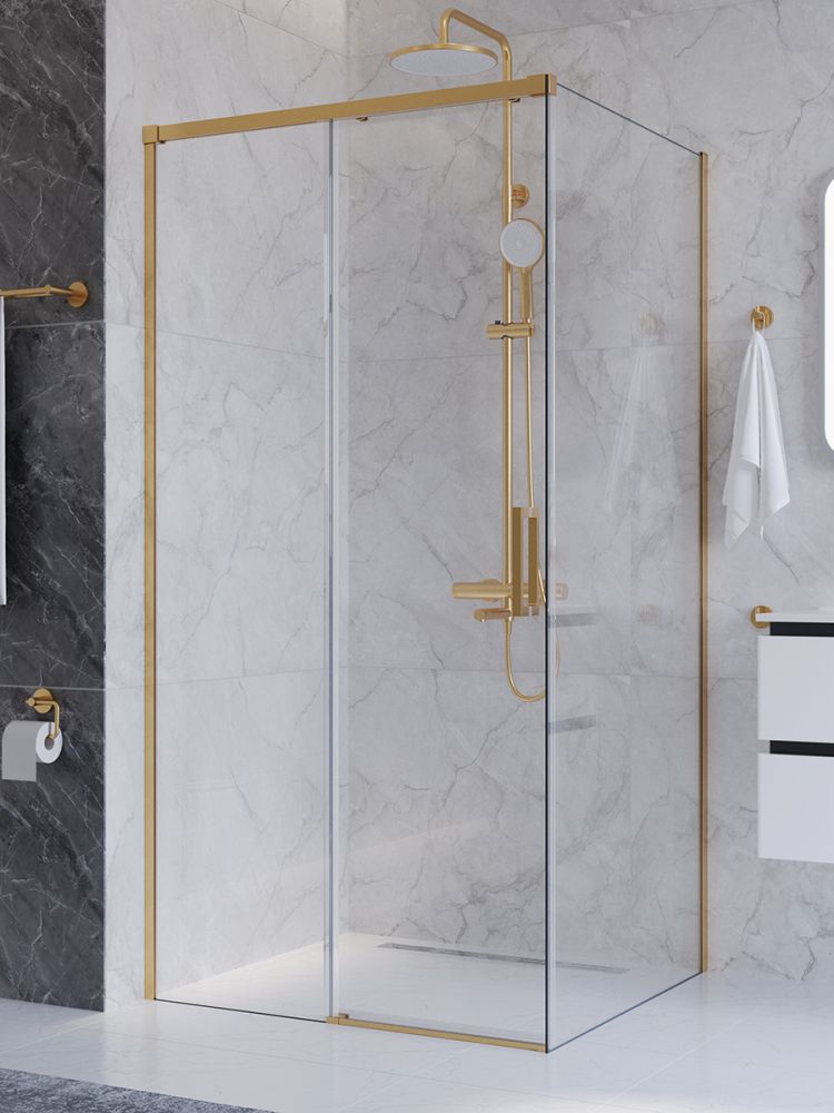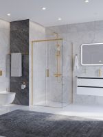 PLANE-AH-1-100/80-C-BORO Душевой уголок без поддона в размере 100x80. Прозрачное стекло толщиной 6мм. Цвет профиля брашированное золото