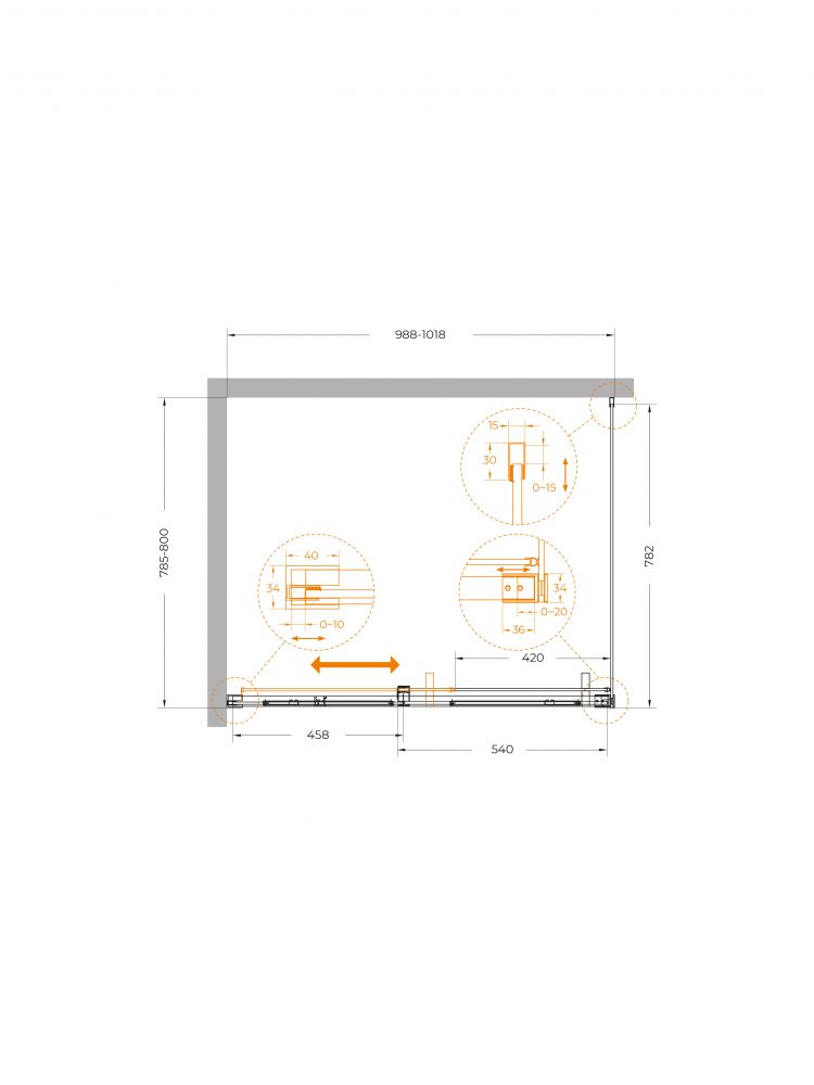 PLANE-AH-1-100/80-C-CR Душевой уголок без поддона в размере 100x80. Прозрачное стекло толщиной 6мм. Цвет профиля хром