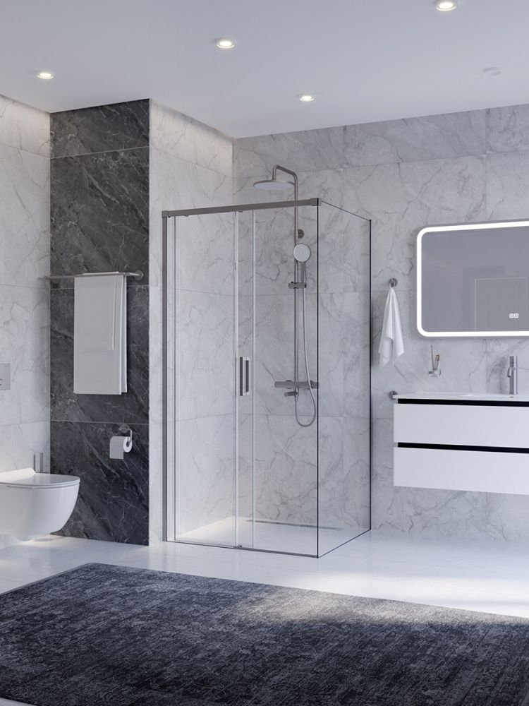PLANE-AH-1-100/80-C-IN Душевой уголок без поддона в размере 100x80. Прозрачное стекло толщиной 6мм. Цвет профиля сатин