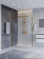 PLANE-AH-1-110/90-C-BORO Душевой уголок без поддона в размере 110x90. Прозрачное стекло толщиной 6мм. Цвет профиля брашированное золото