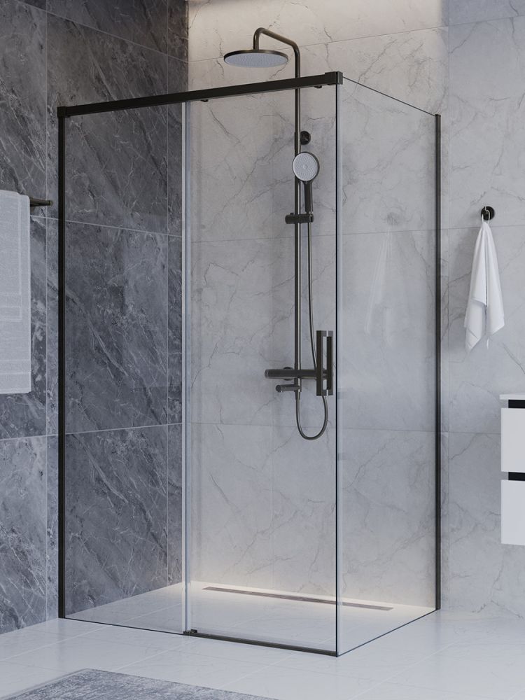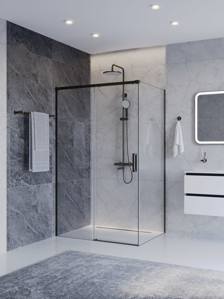 PLANE-AH-1-120/100-C-GM Душевой уголок без поддона в размере 120х100. Прозрачное стекло толщиной 6мм. Цвет профиля оружейная сталь