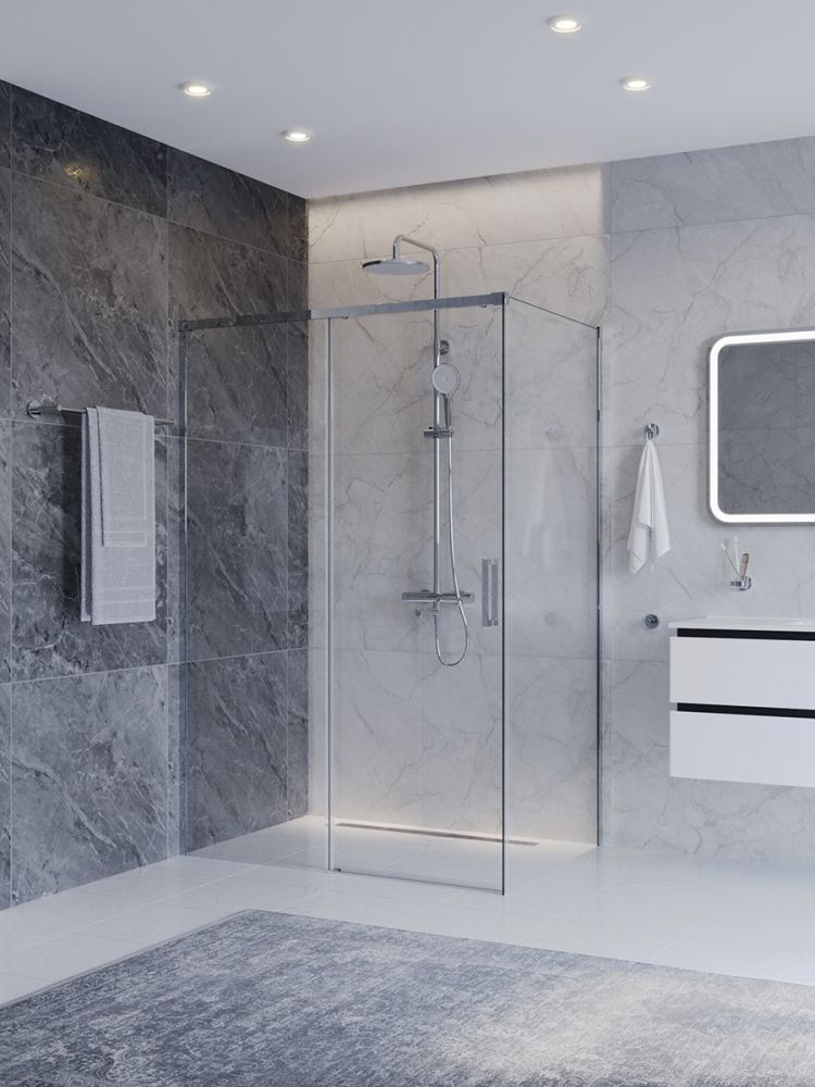 PLANE-AH-1-130/100-C-CR Душевой уголок без поддона в размере 130x100. Прозрачное стекло толщиной 6мм. Цвет профиля хром