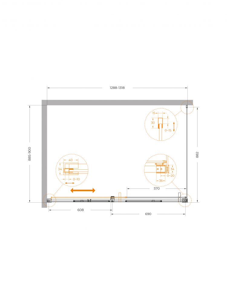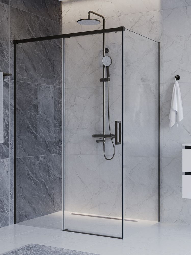 PLANE-AH-1-130/90-C-GM Душевой уголок без поддона в размере 130x90. Прозрачное стекло толщиной 6мм. Цвет профиля оружейная сталь