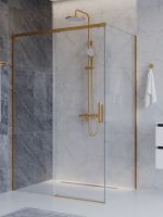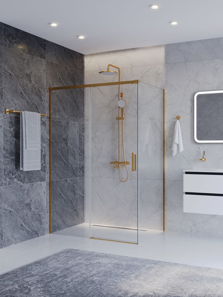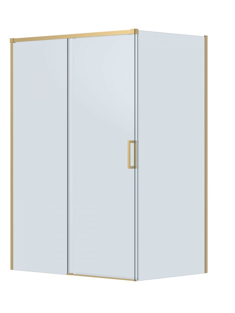 PLANE-AH-1-140/100-C-BORO Душевой уголок без поддона в размере 140x100. Прозрачное стекло толщиной 6мм. Цвет профиля брашированное золото