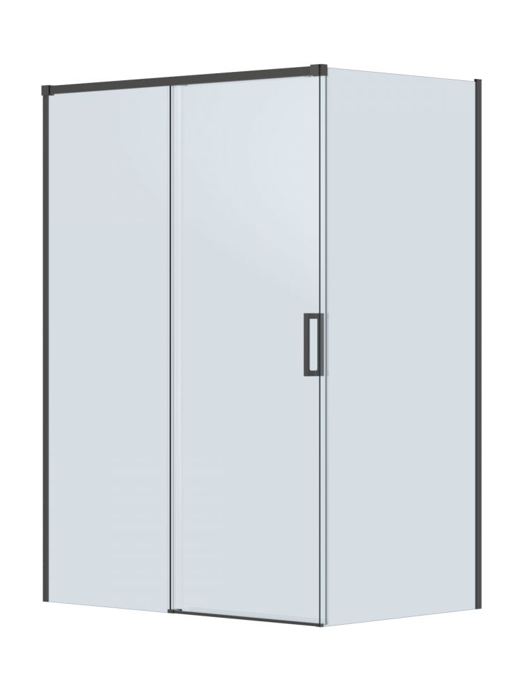 PLANE-AH-1-140/80-C-GM Душевой уголок без поддона в размере 140x80. Прозрачное стекло толщиной 6мм. Цвет профиля оружейная сталь