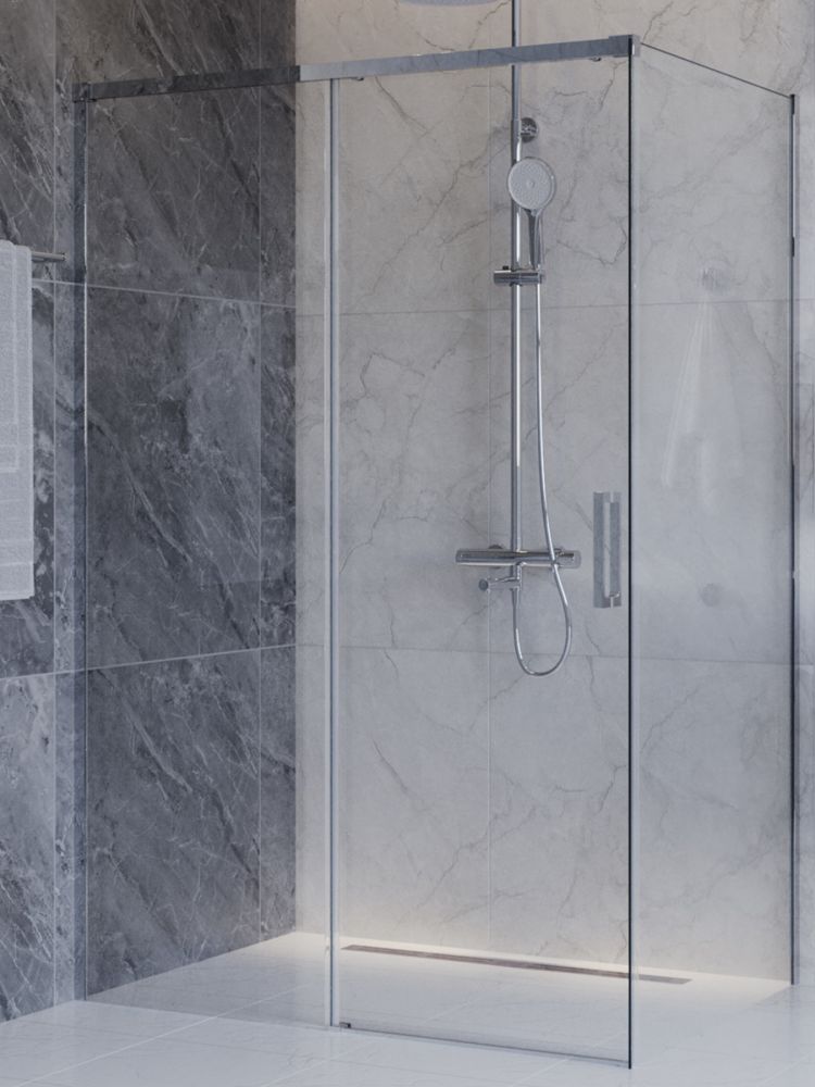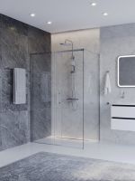 PLANE-AH-1-140/90-C-CR Душевой уголок без поддона в размере 140x90. Прозрачное стекло толщиной 6мм. Цвет профиля хром