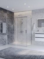 PLANE-AH-1-150/80-C-CR Душевой уголок без поддона в размере 150x80. Прозрачное стекло толщиной 6мм. Цвет профиля хром
