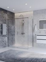 PLANE-AH-1-150/90-C-IN Душевой уголок без поддона в размере 150x90. Прозрачное стекло толщиной 6мм. Цвет профиля сатин
