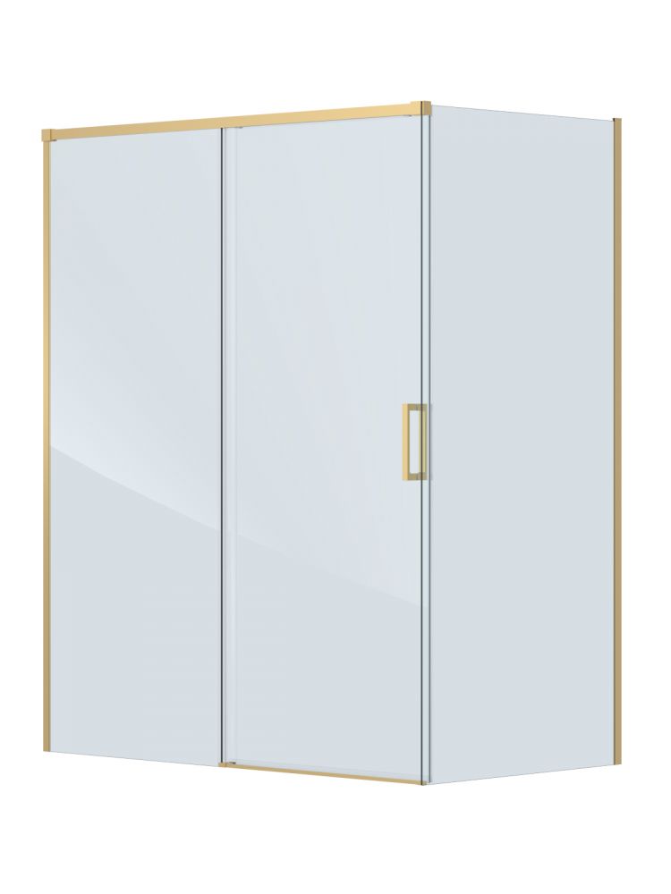 PLANE-AH-1-160/100-C-BORO Душевой уголок без поддона в размере 160x100. Прозрачное стекло толщиной 6мм. Цвет профиля брашированное золото