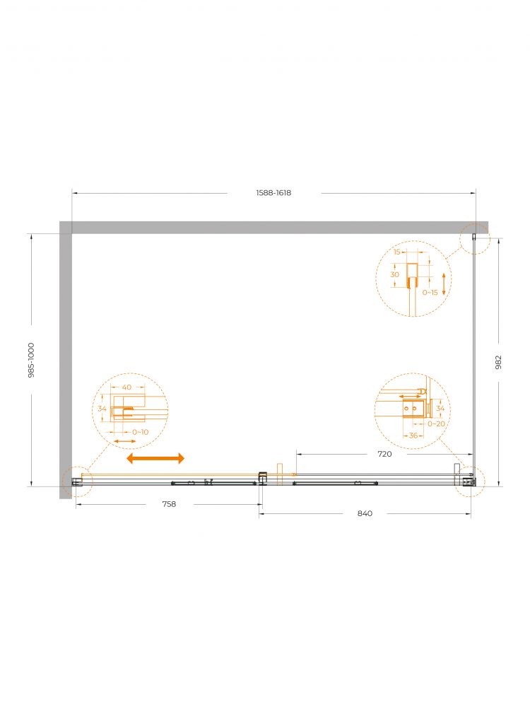 PLANE-AH-1-160/100-C-CR Душевой уголок без поддона в размере 160x100. Прозрачное стекло толщиной 6мм. Цвет профиля хром