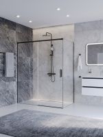 PLANE-AH-1-160/80-C-GM Душевой уголок без поддона в размере 160x80. Прозрачное стекло толщиной 6мм. Цвет профиля оружейная сталь