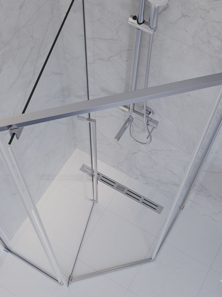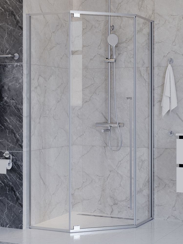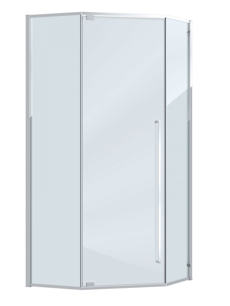 PLANE-P-1-100-C-CR Душевой уголок, отделка Глянцевый хром без поддона в размере 100x100. Прозрачное стекло толщиной 8мм. Цвет профиля хром