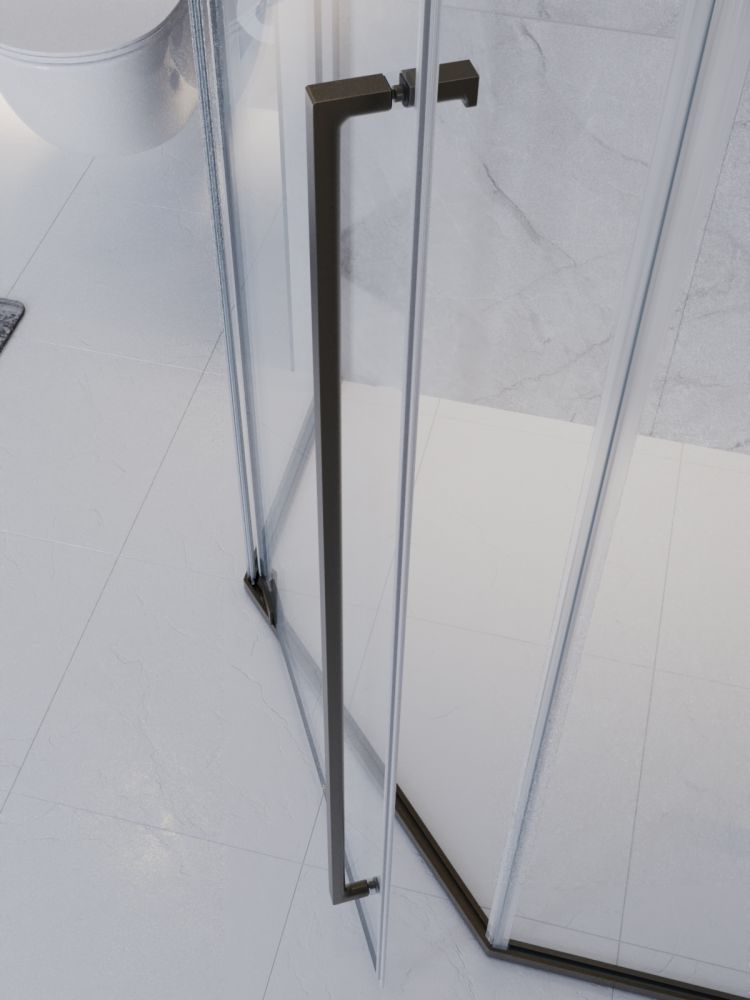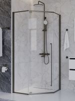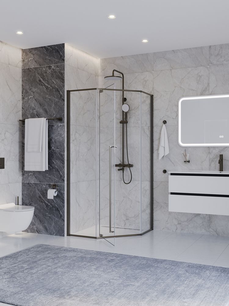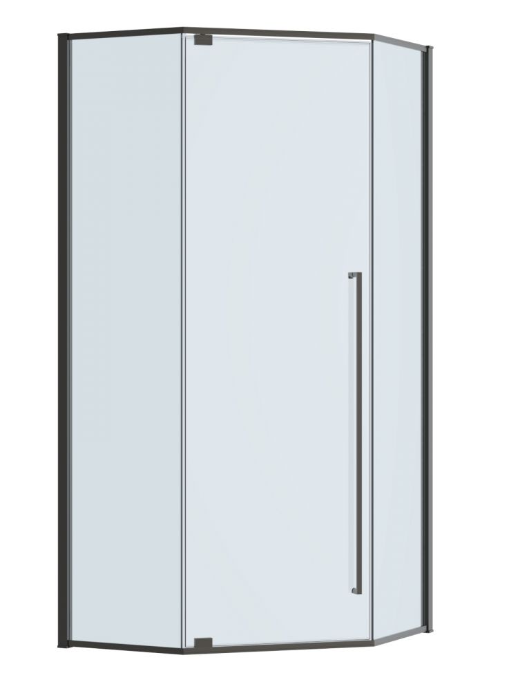 PLANE-P-1-90-C-GM Душевой уголок, отделка Оружейная сталь без поддона в размере 90x90. Прозрачное стекло толщиной 8мм. Цвет профиля оружейная сталь