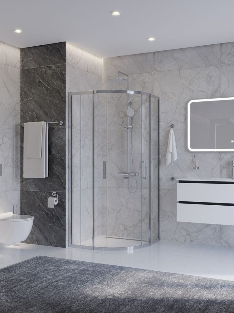 PLANE-R-2-90-C-CR Душевой уголок, отделка Глянцевый хром без поддона в размере 90x90. Прозрачное стекло толщиной 8мм. Цвет профиля хром