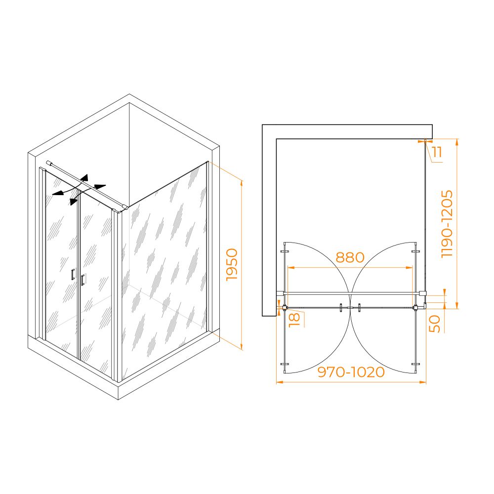 Душевой уголок RGW PA-144 (PA-104+Z-050-2+O-104) 100x120, 060814402-011