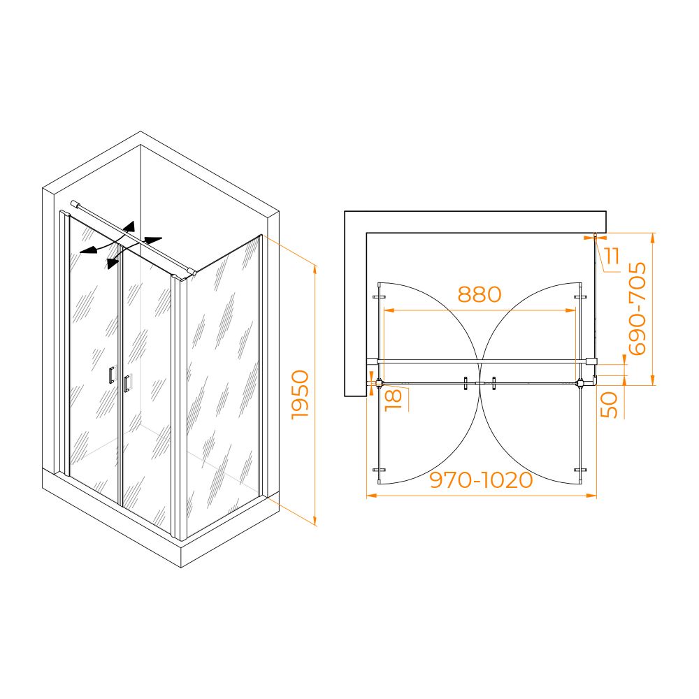 Душевой уголок RGW PA-144 (PA-104+Z-050-2+O-104) 100x70, 060814407-011