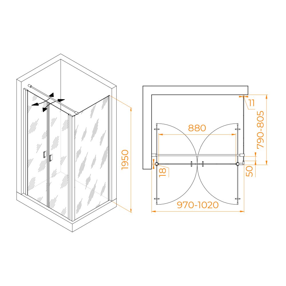 Душевой уголок RGW PA-144 (PA-104+Z-050-2+O-104) 100x80, 060814408-011