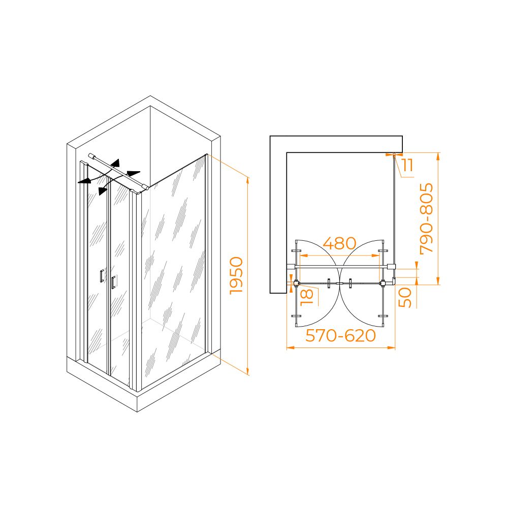 Душевой уголок RGW PA-144 (PA-104+Z-050-2+O-104) 60x80, 060814468-011