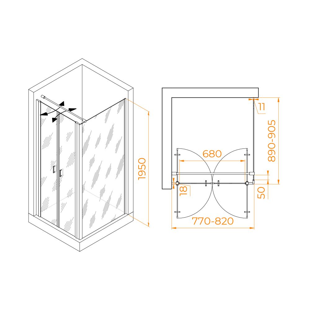 Душевой уголок RGW PA-144 (PA-104+Z-050-2+O-104) 80x90, 060814489-011