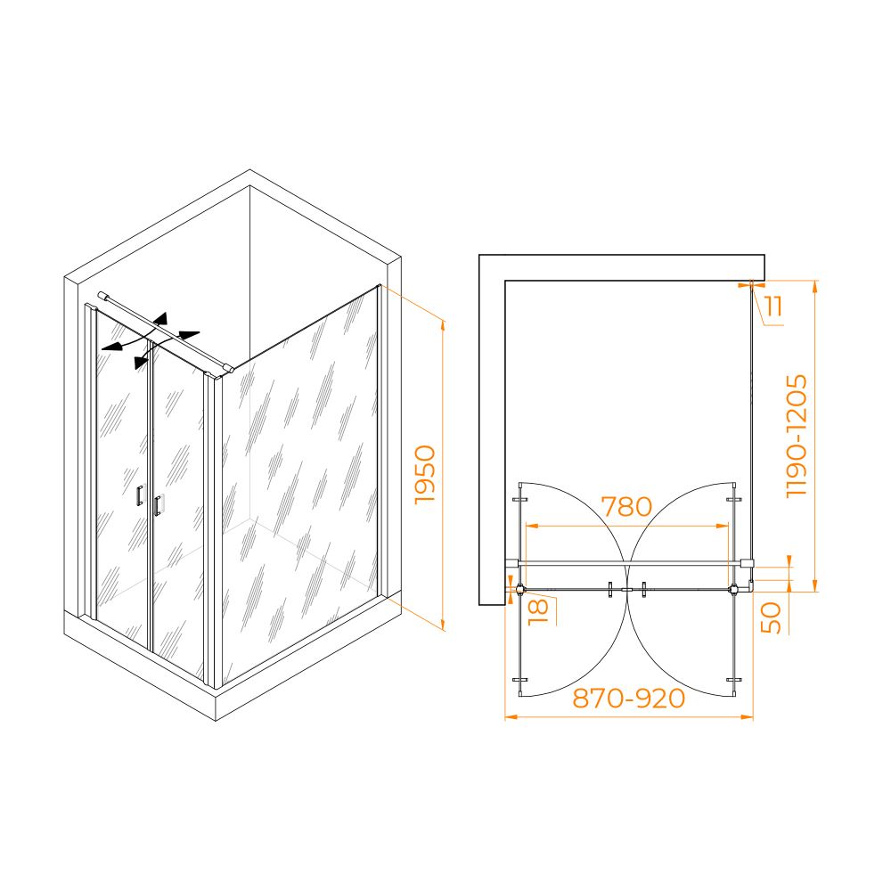 Душевой уголок RGW PA-144 (PA-104+Z-050-2+O-104) 90x120, 060814492-011