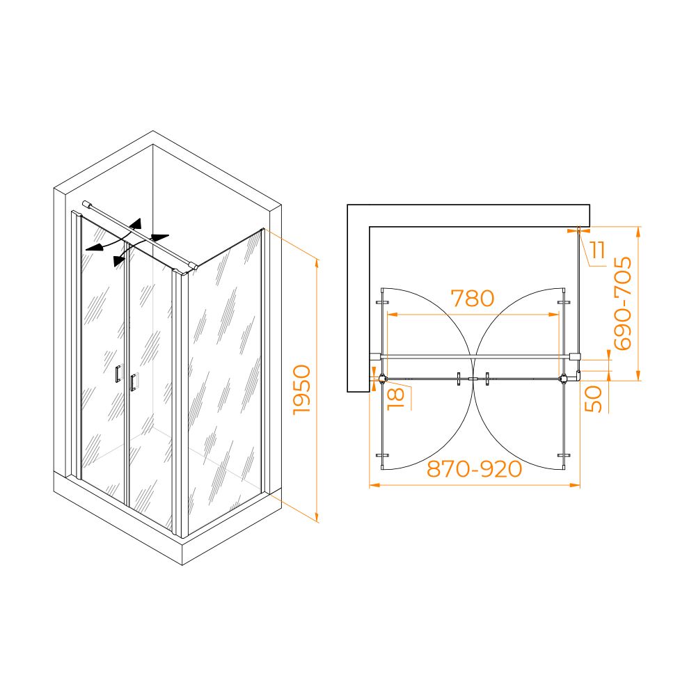 Душевой уголок RGW PA-144 (PA-104+Z-050-2+O-104) 90x70, 060814497-011