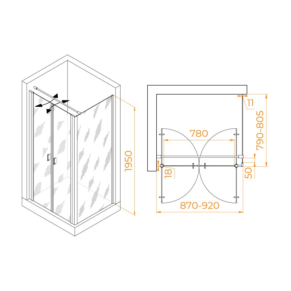 Душевой уголок RGW PA-144 (PA-104+Z-050-2+O-104) 90x80, 060814498-011