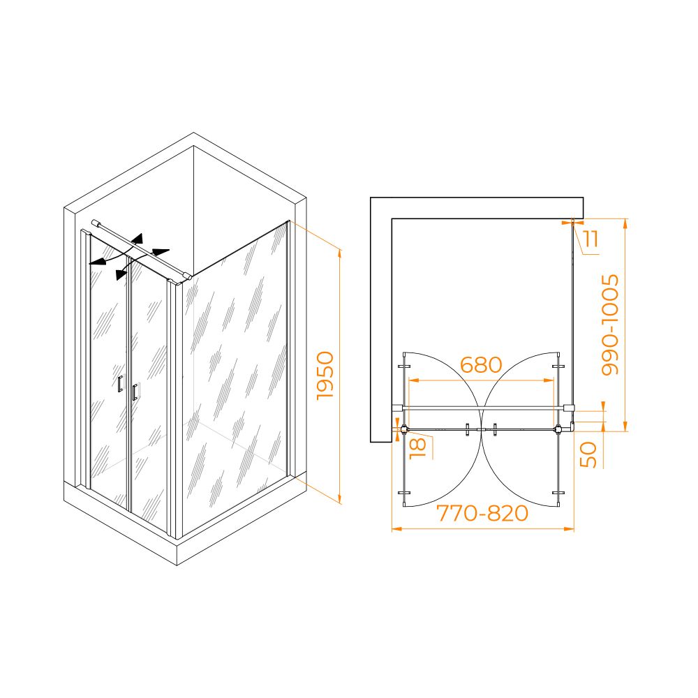 Душевой уголок RGW PA-144B (PA-104B+Z-050-2B+O-104B) 80x100, 060814480-014