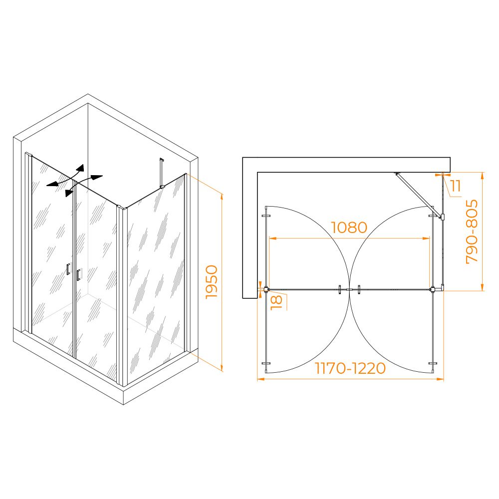 Душевой уголок RGW PA-144B (PA-104B+Z-050-2B+O-204B) 120x80, 060814428-14