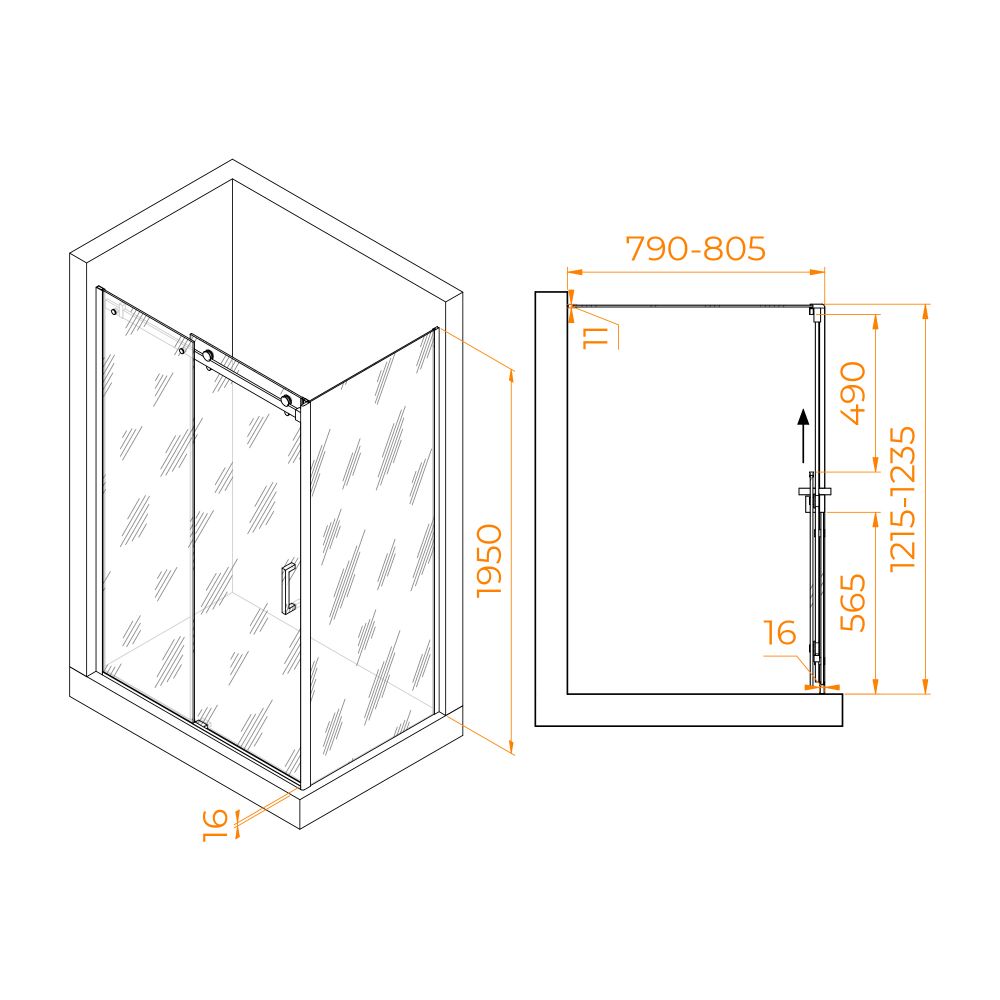Душевой уголок RGW TO-44B (TO-14B+Z-050-2B) 120x80, 02074428-14