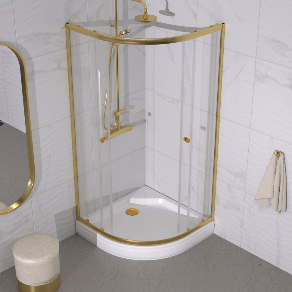 Душевой уголок Triton Альфа-Голд, низкий поддон 90х90 DK416 форма четверть круга, цвет профилязолото, стекло прозрачное толщиной 4мм