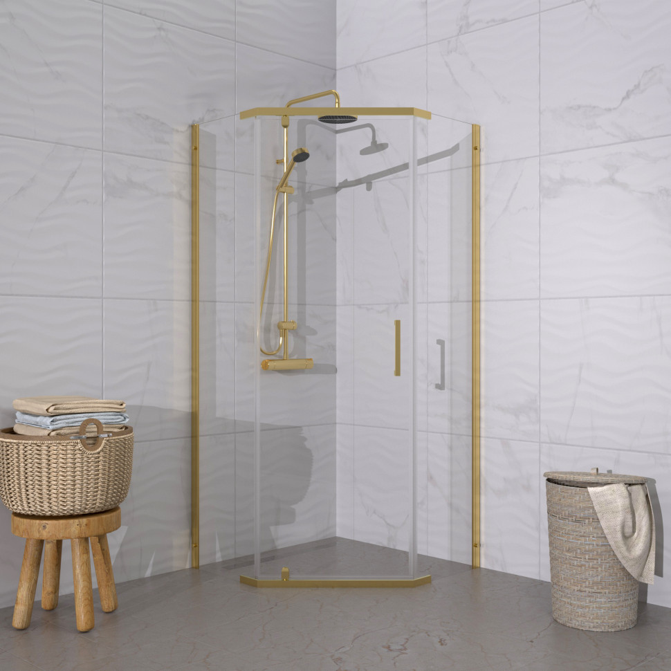 Душевой уголок Triton Дека-Голд, без поддона 100х100 DK428 форма пятиугольная, цвет профилязолото, стекло прозрачное толщиной 6мм