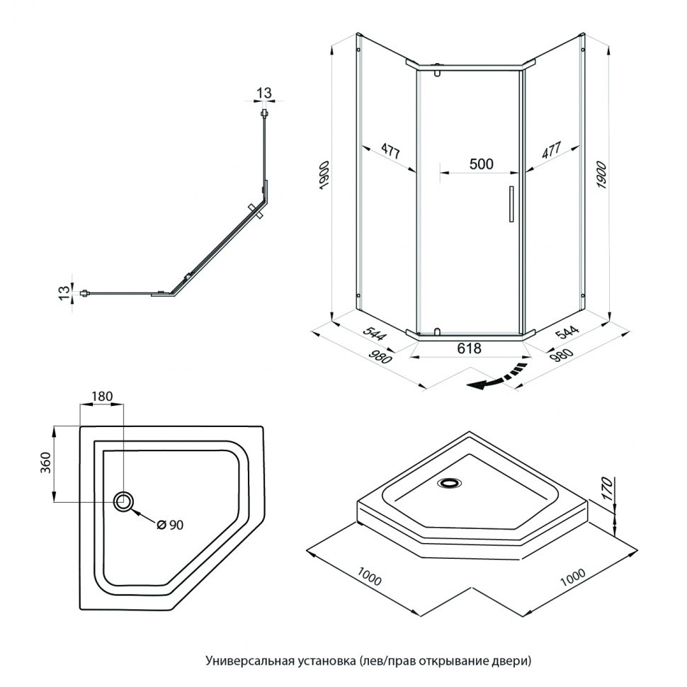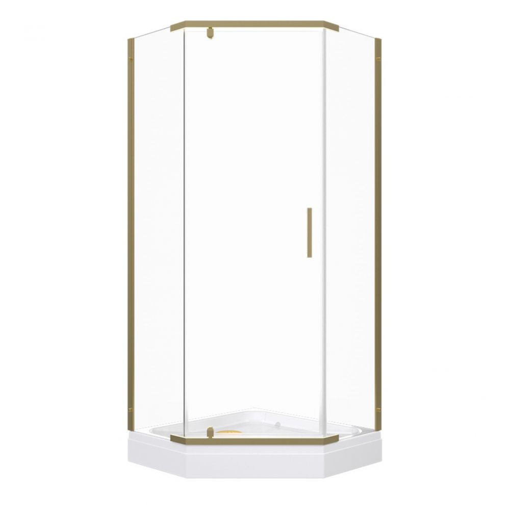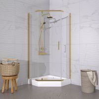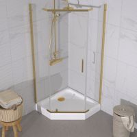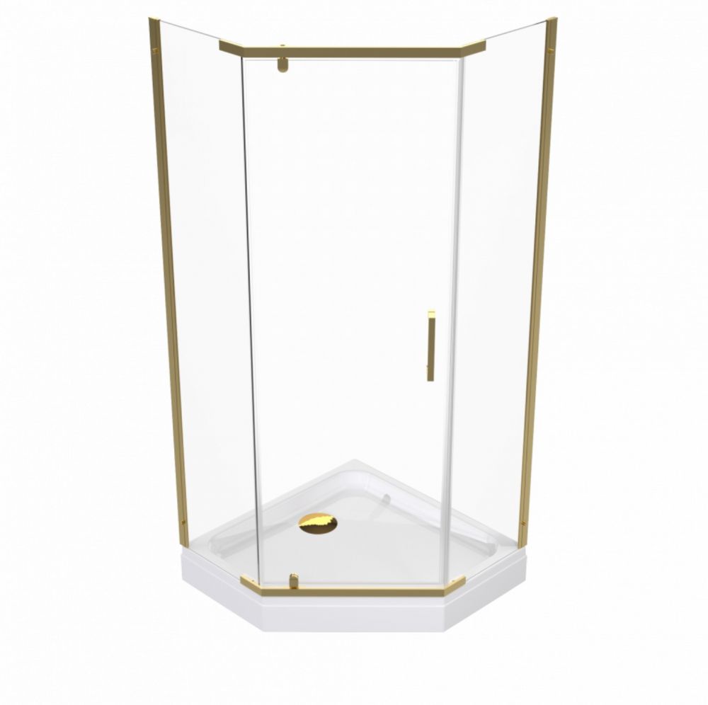 Душевой уголок Triton Дека-Голд, низкий поддон 100х100 DK418 форма пятиугольная, цвет профилязолото, стекло прозрачное толщиной 6мм