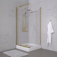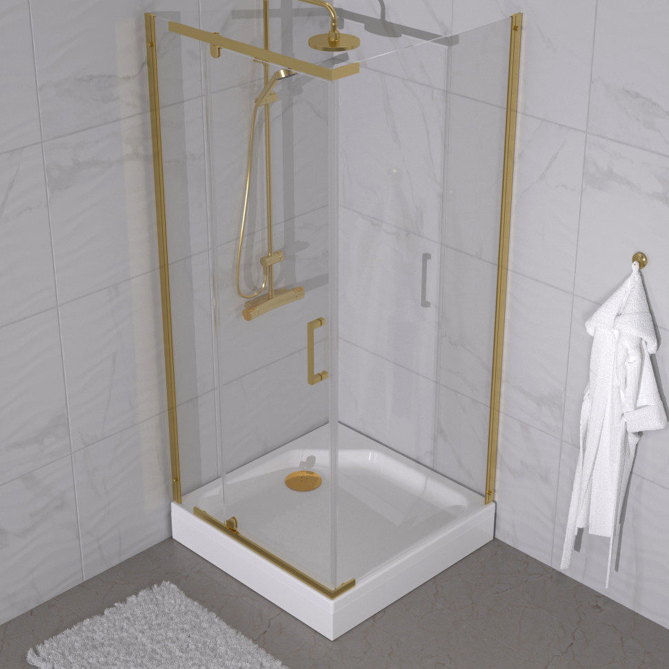 Душевой уголок Triton Терра-Голд, низкий поддон 90х90 DK423 форма квадрат, цвет профилязолото, стекло прозрачное толщиной 6мм