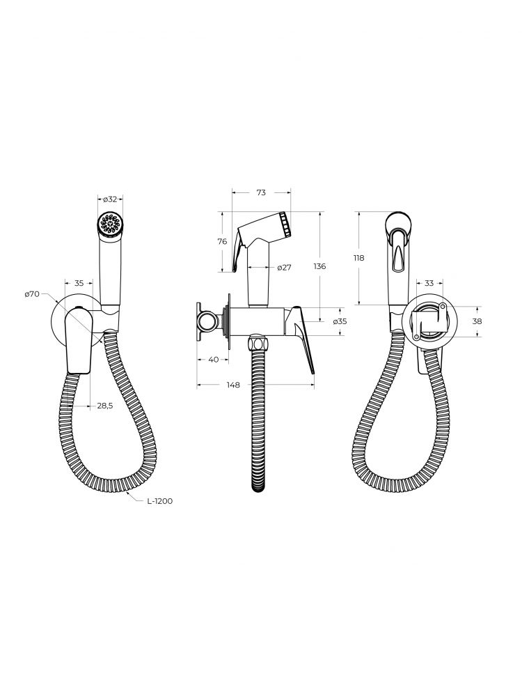 •В комплекте со смесителем: душевая лейка из ABS-пластика, душевой шланг из нержавеющей стали 120 см, держатель душевой лейки