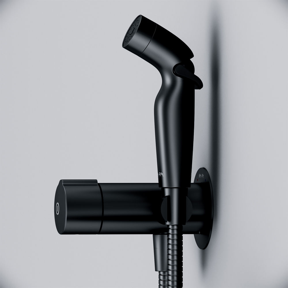 Гигиенический набор с нажимным смесителем AM.PM X-Joy, TouchReel, чёрный F0H85A522
