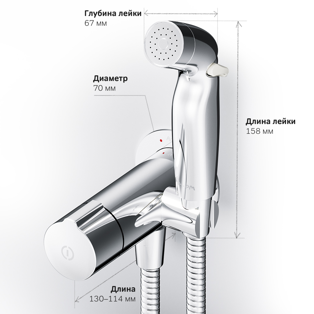 Откройте для себя невероятный спектр возможностей с новым гигиеническим решением из коллекции X-Joy. Ультратрендовый компактный дизайн этого смесителя принадлежит авторству всемирно известной австрийской студии GP designpartners. Впервые на рынке гигиеническое решение с нажимным смесителем. Интуитивная понятная система управления TouchReel для включения/выключения смесителя одним нажатием. Новая эргономичная форма лейки идеально ложится в руку. Для максимального удобства мы разработали возможность регулировки воды прямо на лейке