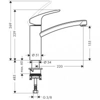 Hansgrohe 31806000 Focus Смеситель для кухни, однорычажный, с накидной гайкой, 3/8