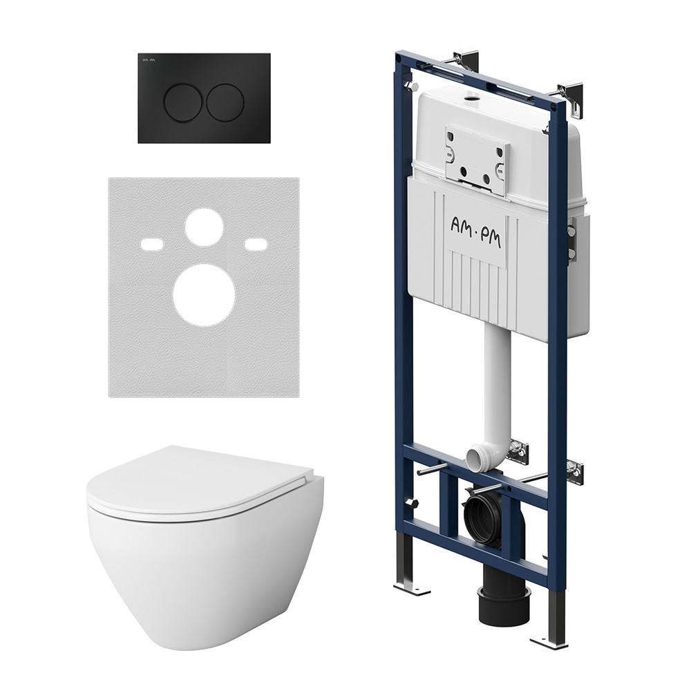 Инсталляция AM.PM MasterFit с клав L черн. мат с унитазом Spirit V2.0 FlashClean IS100138.701700