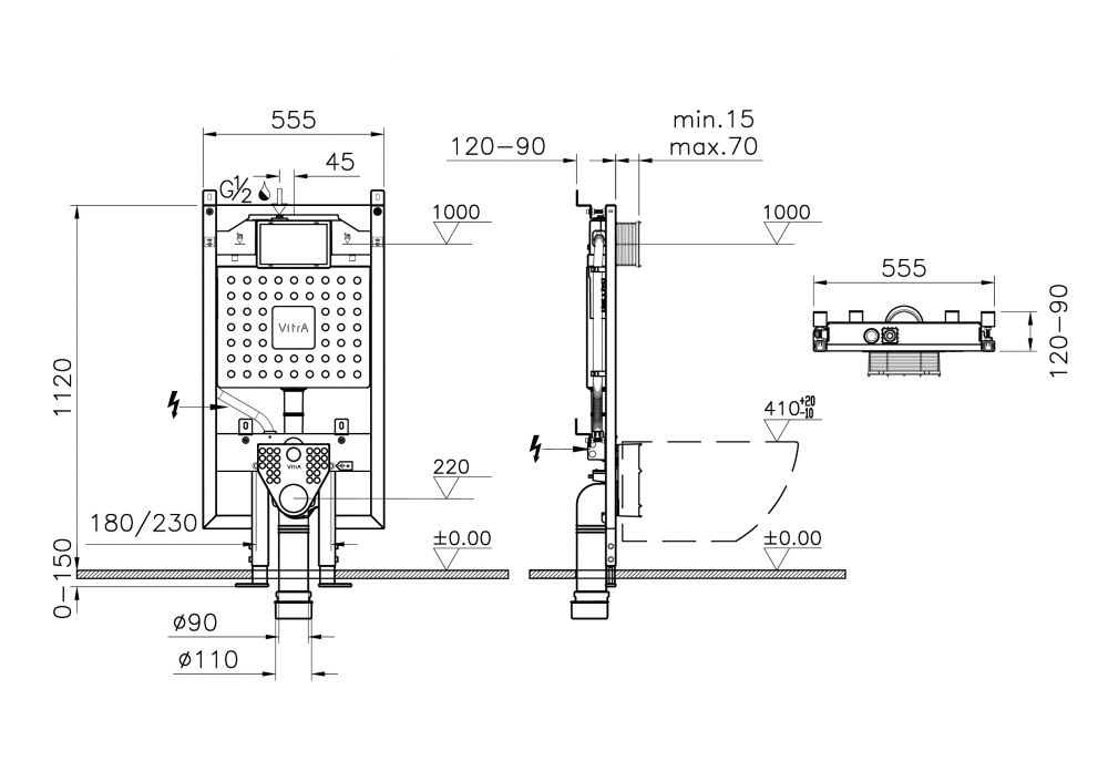 Инсталляция для подвесного унитаза VitrA V8 без кнопки смыва 768-5800-01