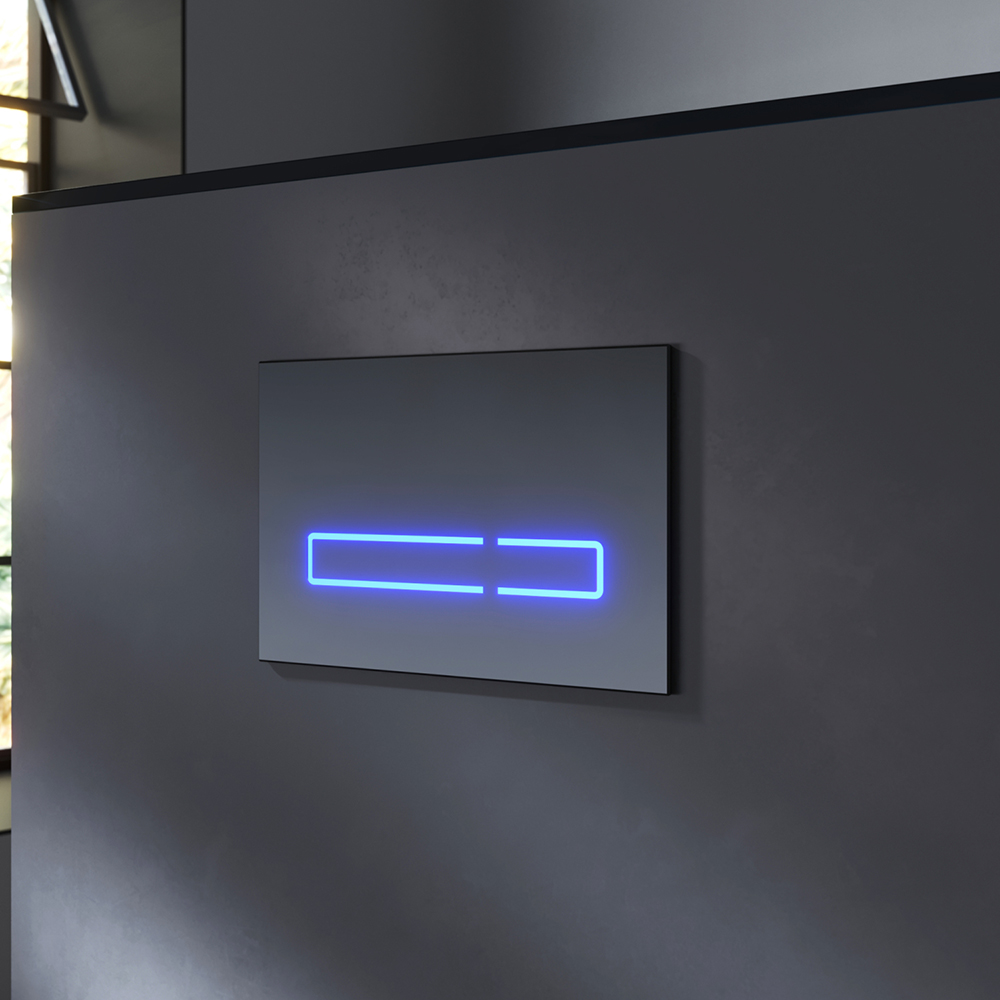 Гигиеничный бесконтактный смыв - достаточно поднести руку на расстояние 2-3 см от сенсора для активации смыва. Стильный дизайн – внешняя панель выполнена из чёрного стекла, при активации смыва включается подсветка. Простота монтажа – не требуется подводить электричество, клавиша работает от батареек. Экономичность - качественные батарейки прослужат до одного года в условиях домашнего использования. Комфорт – если батарейки разряжены, смыв можно активировать вручную, сняв внешнюю стеклянную панель.