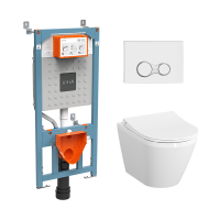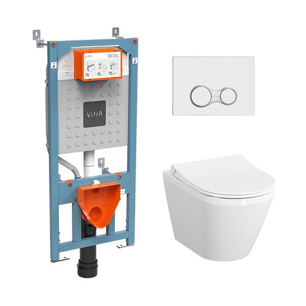 Инсталляция с унитазом VitrA Integra Round комплект 4в1 безободковый, клвиша глянцевый хром 9856B003-7205