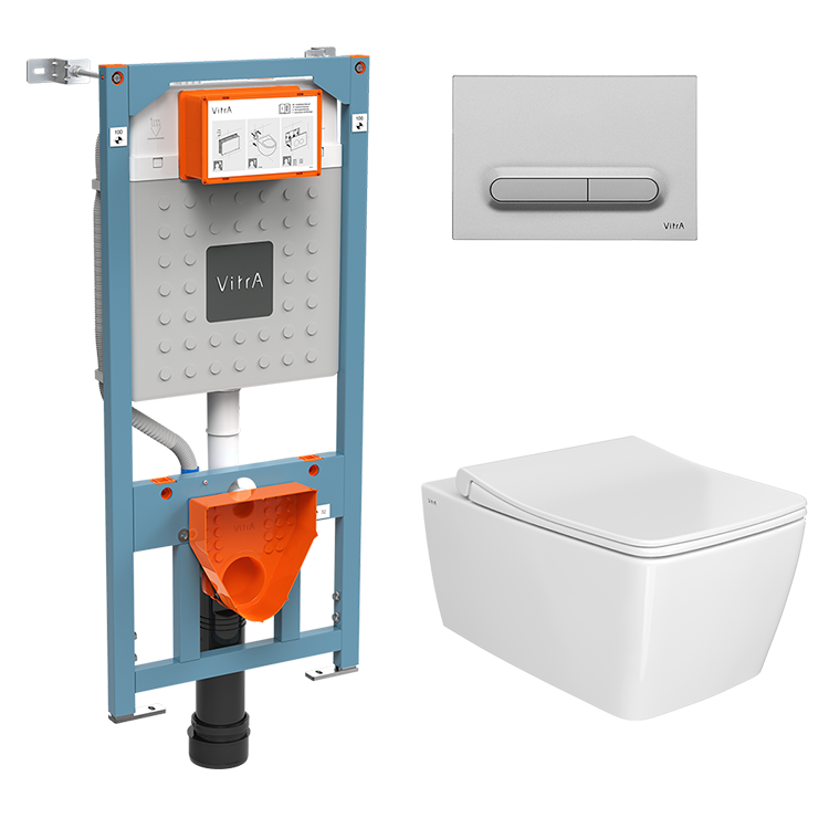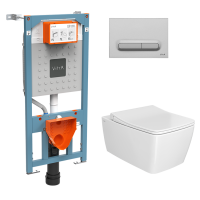 Инсталляция с унитазом VitrA Metropole комплект 4в1 безободковый, клвиша матовый хром 9820B003-7201