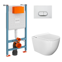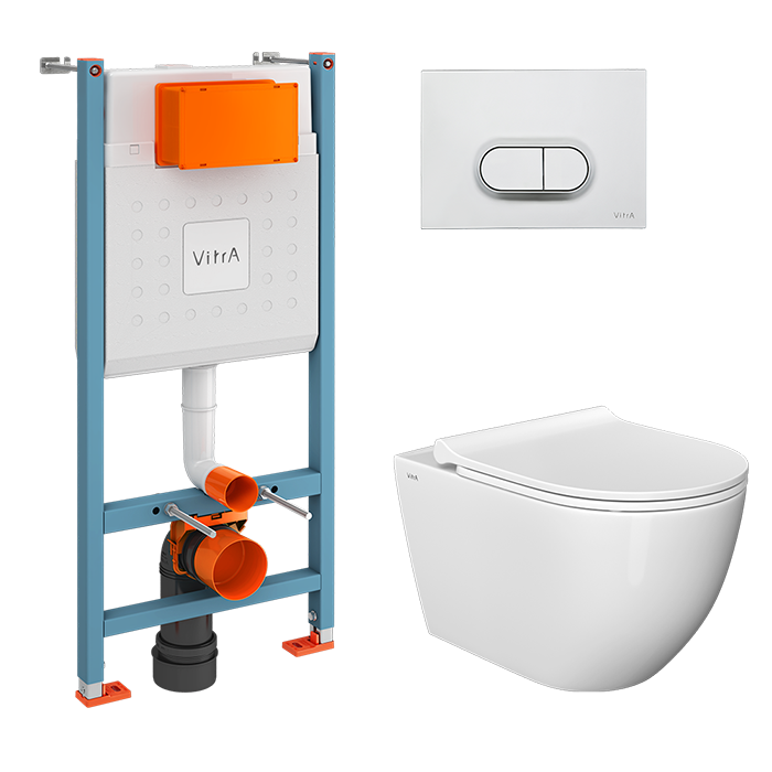 Инсталляция с унитазом VitrA Mia Round комплект 4в1 безободковый, клвиша матовый хром 9856B003-7200