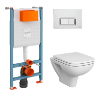 Инсталляция с унитазом VitrA S20 комплект 4в1 безободковый, клвиша глянцевый хром 9004B003-7207