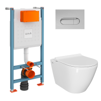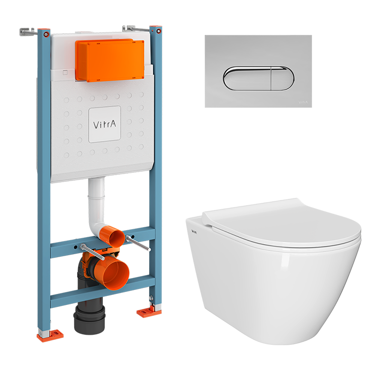Инсталляция с унитазом VitrA Sanibelle комплект 4в1 безободковый, клвиша глянцевый хром 9878B003-7200