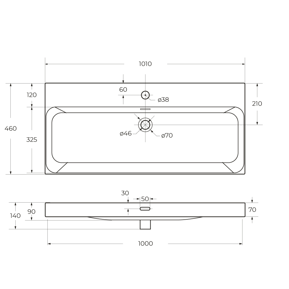 Керамическая раковина BB-8078-100, 1010x460x140